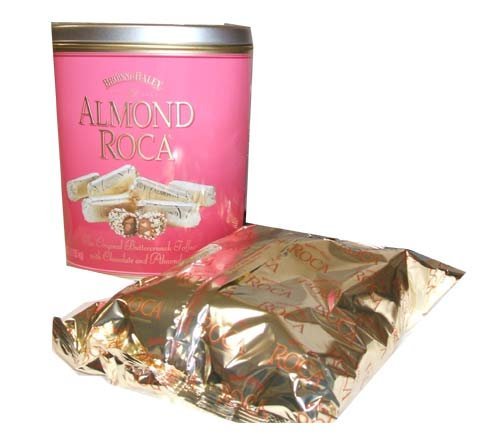 - Brown and Haley Almond Roca Buttercrunch Toffee and Chocolate Almonds Holiday 39 Ounce Gift Tin